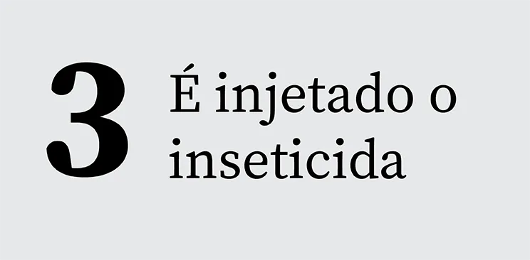 Fazemos um pequeno furo selado com válvulas biológicas e injetamos o produto diretamente no sistema do pinheiro, sem prejudicar a árvore.
